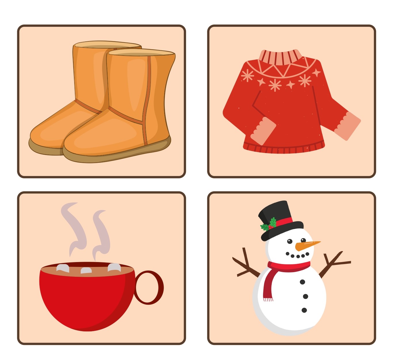 כל תלמיד מתבקש להדפיס את התמונות, לגזור ולהדביק בדף ולכתוב על יד כל תמונה את השם של החפץ. לדוגמא על יד התמונה של המגפיים לכתוב בצורה מסודרת את המילה – מגפיים.